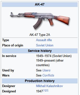 Kalashnikov AK47 – designed 1947 – in service until 1974