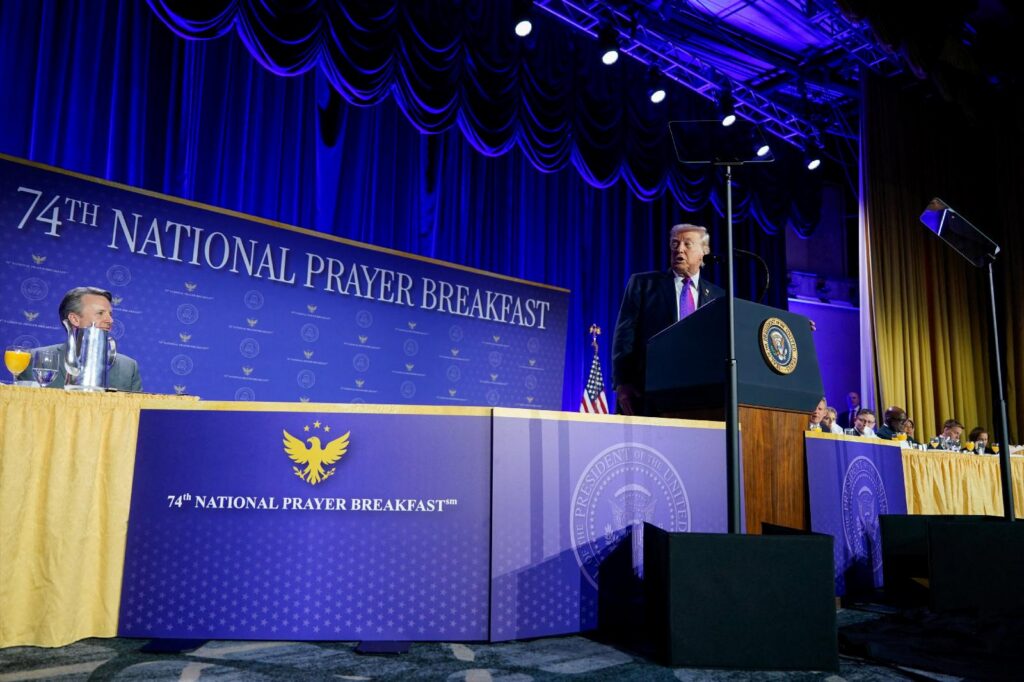 U.S. President Donald Trump speaks during the 74th National Prayer Breakfast in Washington Feb. 5, 2026.