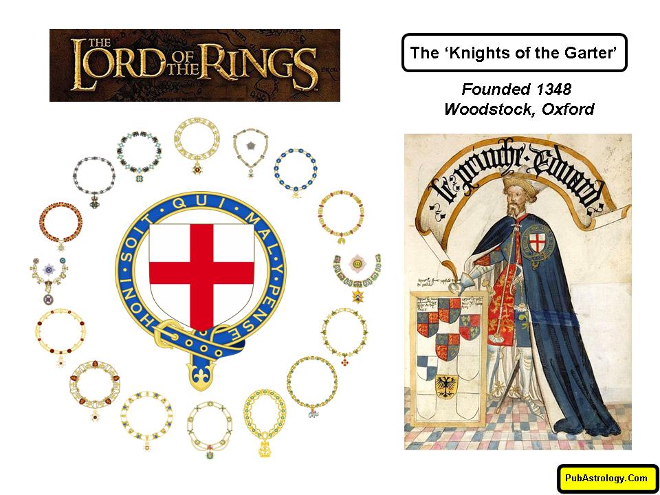 JRR Tolkien’s “Lord of the Rings” – an allusion to the “Order of the Knight’s of the Garter” founded 1348, Woodstock, Oxford…?