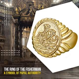 The Ring of the Fisherman (Latin: Anulus piscatoris; Italian: Anello Piscatorio), also known as the Piscatory Ring, dates back to the 13th Century and is an official part of the regalia worn by the Pope, who according to Catholic theology is the head of the Catholic Church and successor of Saint Peter, who was a ‘fisherman’ by trade. It used to feature a bas-relief of Peter fishing from a boat, a symbolism derived from the tradition that the apostles were “fishers of men” (Mark 1:17). The Fisherman’s Ring is a signet used until 1842 to seal official documents signed by the Pope. Since at least the Middle Ages it has been a tradition for Catholics meeting the Pope to show their devotion by kissing the ring.