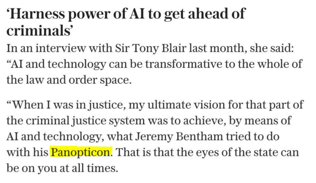UK Home Secretary Shabana Mahmood’s PANopticon – her ultimate vision for the future.