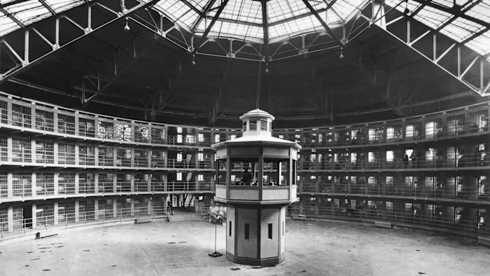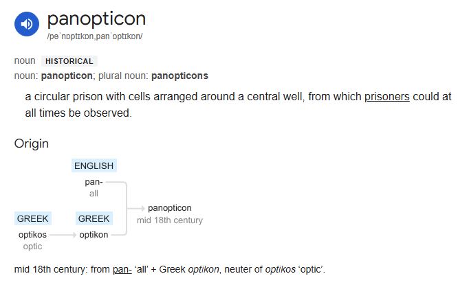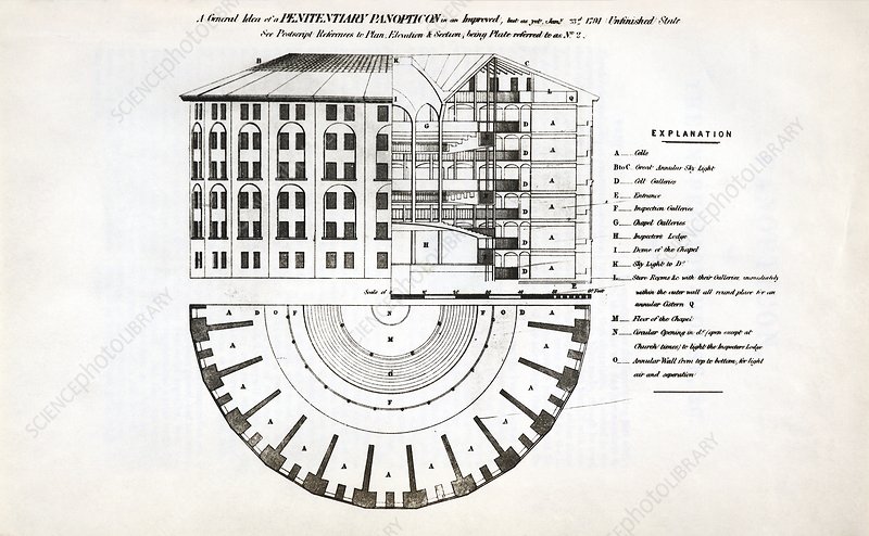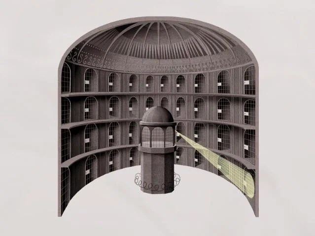 PANopticon – a circular prison with cells arranged around a central well, from which prisoners could at all times be observed.