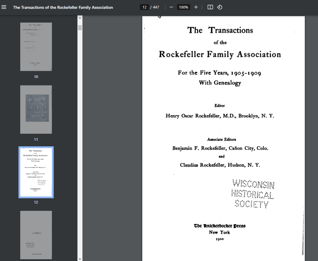 From the Trance-Actions of the Rockefeller Family Association 1905 – 1909