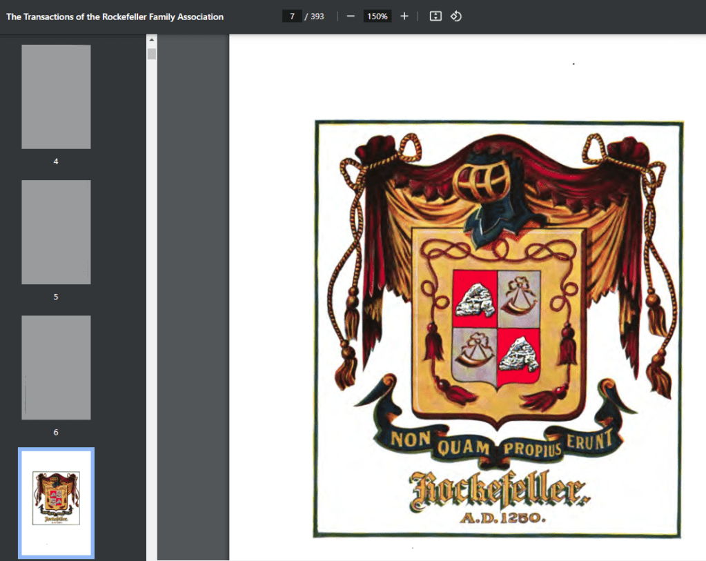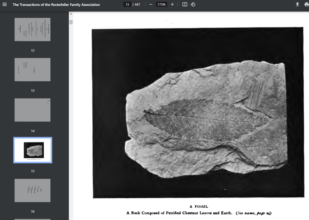 From their own publications (the Transactions of the Rockefeller Family Association), the ROCKEFELLER name is founded in antiquity and derives from the Creissels region of France where leaves (FEUILLES) can be found fossilised in ROQUE.